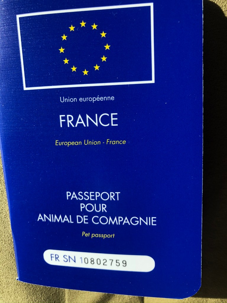 Once in France, we went to the trouble to get Brighton his European pet passport. This will make it easier to take him on trains and ferries in Europe. The process consisted of bringing him and his vaccination records to a local veterinarian.