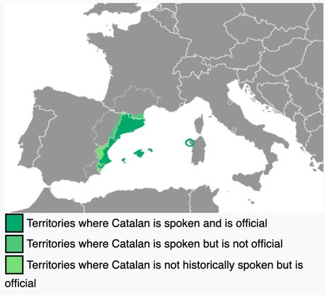 One interesting challenge about our apartment locale is that we’re in the Catalonia region of Spain, which runs along the border with France and down the eastern coast well past Barcelona. Catalan is the co-official language, along with Castilian (Spanish). Many people speak Catalan as their first language. A Romance language, it has the same kind of similarities to Spanish as Italian does. I can understand about 50% of it when I see it written, and much less when it’s spoken.