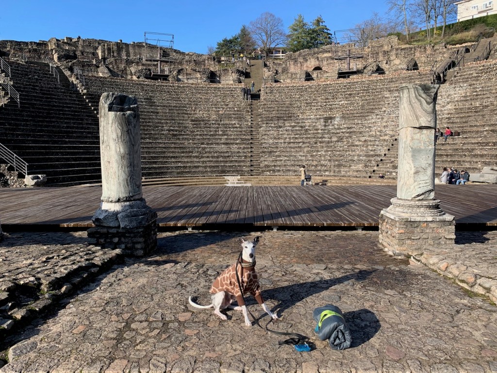 Pro Tip: If you’re visiting a site with lots of stairs, like the ancient Roman theater in Orange, France, it’s good to remember that your dog is twelve years old before you start climbing all the way to the top row!