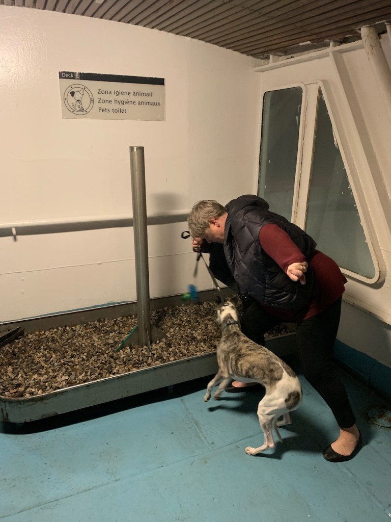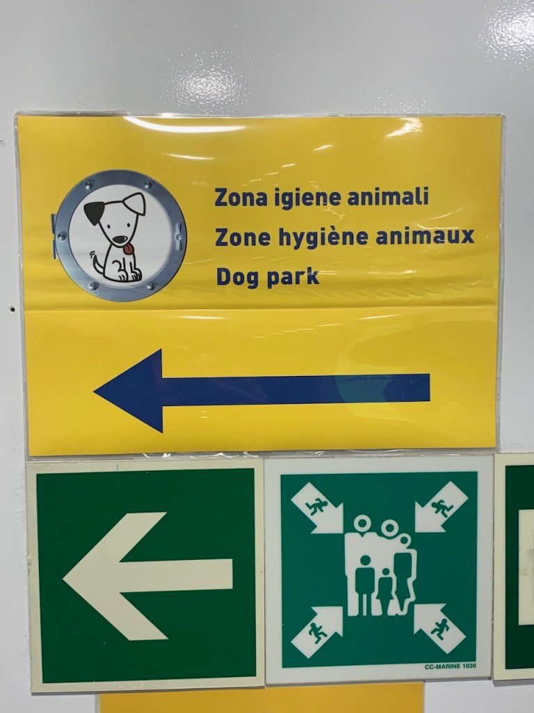The overnight ferry between mainland Italy and Sardinia was fairly dog friendly (there were lots of dogs on the ferry) though we were pretty underwhelmed by the onboard “dog park”. It literally turned out to be a box of rocks. Brighton refused to to use the box. The walnut-sized rocks were swimming in liquid (which I hope was from splashing waves). Instead, like most of the other dogs we saw, he just used the water-proofed deck.