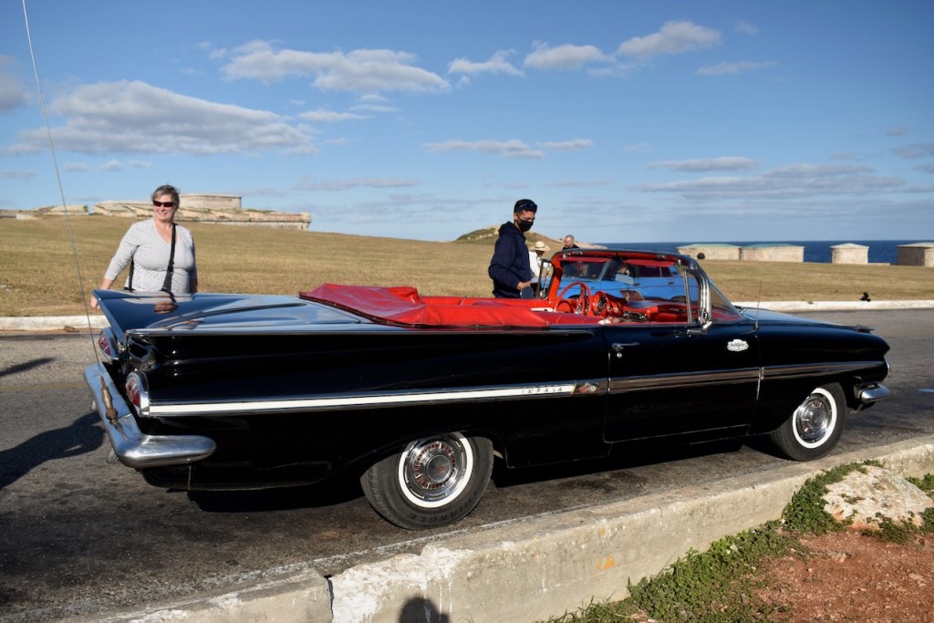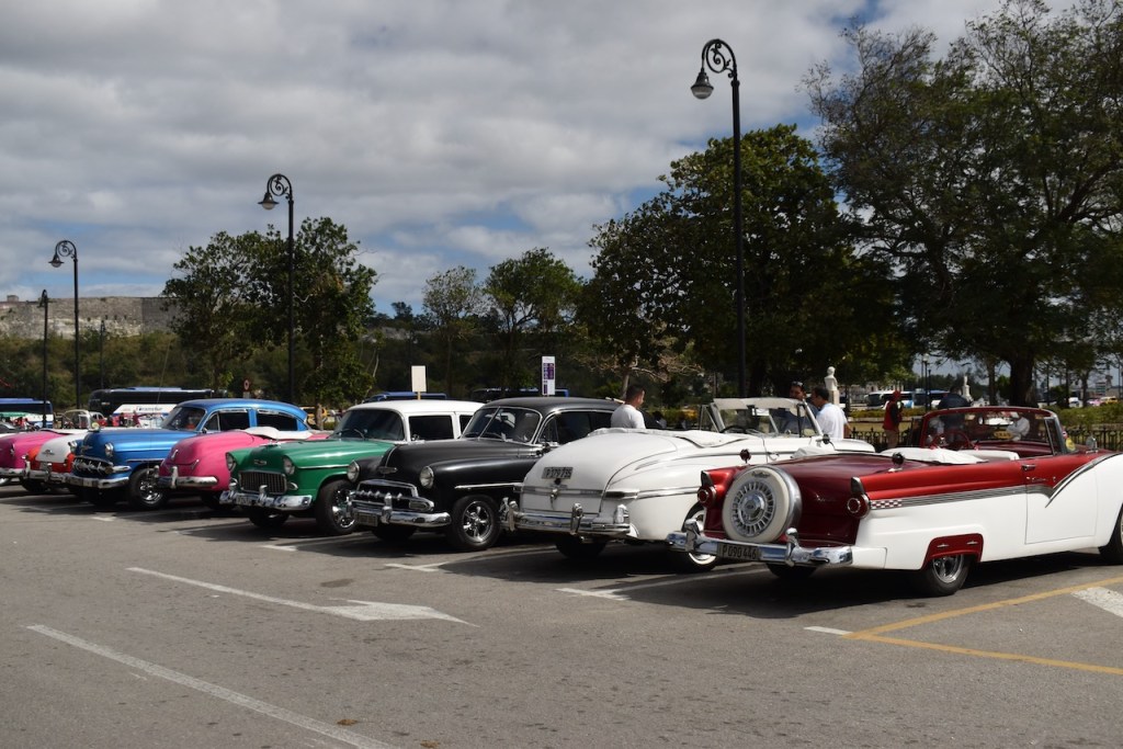 He was the same with classic 1950s American cars. “Ooh, there’s a 1955 Chevrolet Bel Air Sport Coupe. There’s a 1952 Chevy Fleetline, but made into a convertible. That’s a 1952 Oldsmobile Super 88, painted a modern color…”  There are an estimated 60,000 old American cars in Cuba, many of them spruced up and “restored” for tourism.  Cubans are inventive and undeterred in keeping them running, manufacturing replacement parts, swapping in a Mercedes diesel engine, or Frankensteining a Buick fender onto a Ford, or Chrysler seats into an Olds.