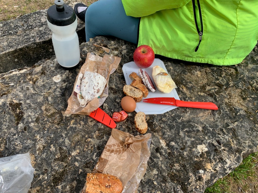 On cycling days we sometimes stop for lunch at a bistro (which often includes wine). Otherwise, our typical (like most days) lunch is a picnic of crusty bread, some kind of French cheese, salami, and apples. Having charcuterie for lunch is great. Who doesn’t love a charcuterie board (well, other than vegetarians)? As much as I enjoy that meal, I’m been jonesing for a jar of peanut butter, but grocery stores only seem to sell Nutella.