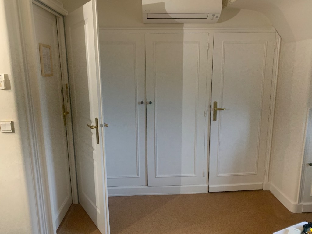 The next night, when we checked into our hotel, we were a bit aghast that the wall opposite the bed looked like this. For the record, the door on the far right was the bathroom door. And oddly, our room had two doors out to the hallway. And I don’t mean a few feet apart along the same wall. I mean, you’d unlock the hallway door and there was another door staring you right in the face, about three inches always from the first door. It was kind of like having a storm door setup. We postulated that the double doors were a kind of sound proofing.