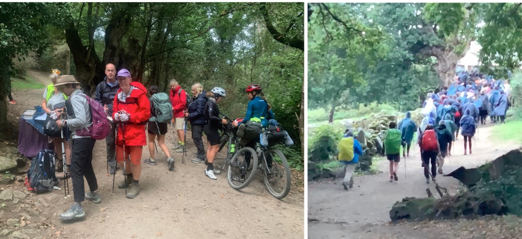 Pilgrims carry a “pilgrim’s passport,” called a “credencial” which gives you access to hostels (“albergue”) usually run by the local parish or other religious groups. Pilgrims get their passports stamped with an official St James seal at any albergue, hotel, restaurant, etc., as proof that they’ve been on the pilgrimage and followed the “rules” to make them eligible for the “compostela” certificate of accomplishment. There are two versions of the compostela: a religious version (which also includes some level of indulgence), and an “it was a good walk” kind for us non-religious types. To be eligible for a compostela, a pilgrim must:  1) make the pilgrimage for religious/spiritual reasons or at least have an attitude of search, 2) do the last 100 km on foot/horseback or cycle the last 200 km, 3) collect at least two credencial stamps each day. I didn’t bother getting a compostela. The certificate seems superfluous compared to the experience. According to Mr. Wikipedia, in 2022 just shy of 440,000 pilgrims finished the last 100 km.