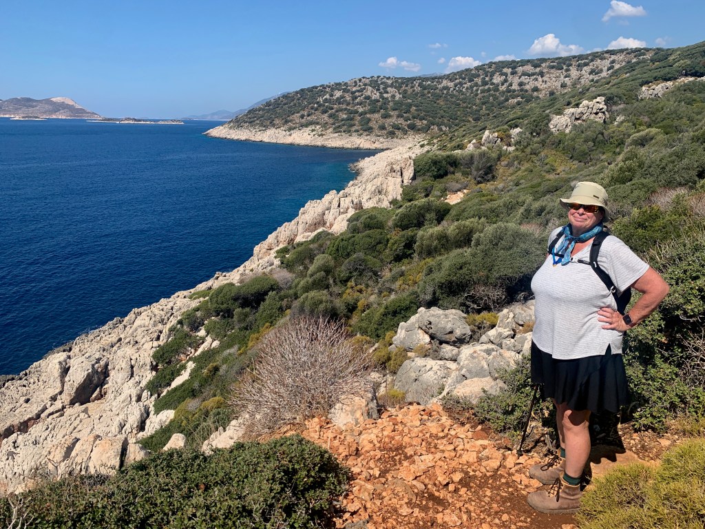 Some days we did long rides, other days we did strenuous hikes, and some days we did modified triathlons: cycle, hike (running along the trails would have been suicidal), and then a swim (usually just floating around in the warm Mediterranean Sea or hotel pool).  And squeezed into all that exercise, we’d spent time walking through the ruins of an ancient site. Over 11 rides, I cycled just over 350 miles and climbed 33,000+ feet (563 km/ 10,050 meters), with a few nasty, steep climbs complemented with some great downhills. The longest cycling day was 56 miles. Most of our hikes were in the 16 km (10 mile) range but the trails were anything but a “stroll in the park.” A few days into our Türkiye tour, Joy commented that it felt like we were training for a 10K by running marathons, but this was what we asked for!