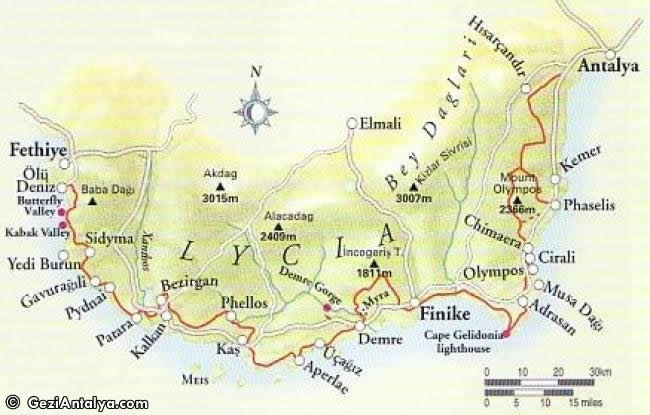 • Myra has an impressive set of 4th & 5th century BC rock cliff tombs, and beautifully carved buildings.